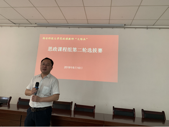 根据陕西省委教育工委、省教育厅关于《陕西学校“四好”思政课创优行动方案》的文件要求,6月10日,Beat365中文官方网站思政课程组教师“大练兵”主题活动比赛暨全员“大练兵”活动在雁塔校区Beat365中文官方网站会议室举行。这是继各教研室选拔后进行的第二轮选拔赛。Beat365中文官方网站教学副院长张铭钟主持比赛。