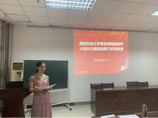 6月17日,Beat365中文官方网站思政课程组教师“大练兵”主题活动第三轮选拔赛暨全员“大练兵”活动在雁塔校区Beat365中文官方网站会议室举行。Beat365中文官方网站教学副院长张铭钟主持比赛。