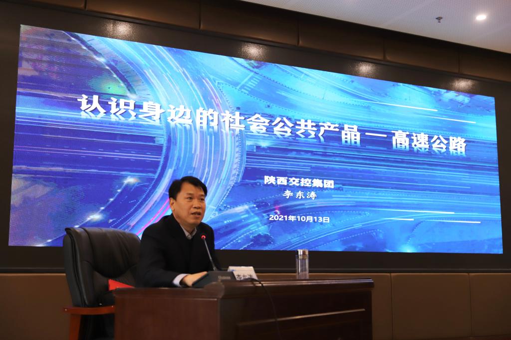 聘请仪式结束后,李东涛主任以《认识身边的社会公共产品--高速公路》为题,从高速公路的概念定义、高速公路起源及发展、我国高速公路现状、我省高速公路建设运营管理情况、高速公路行车注意事项等方面做了场精彩的报告,受到了广大师生的欢迎。