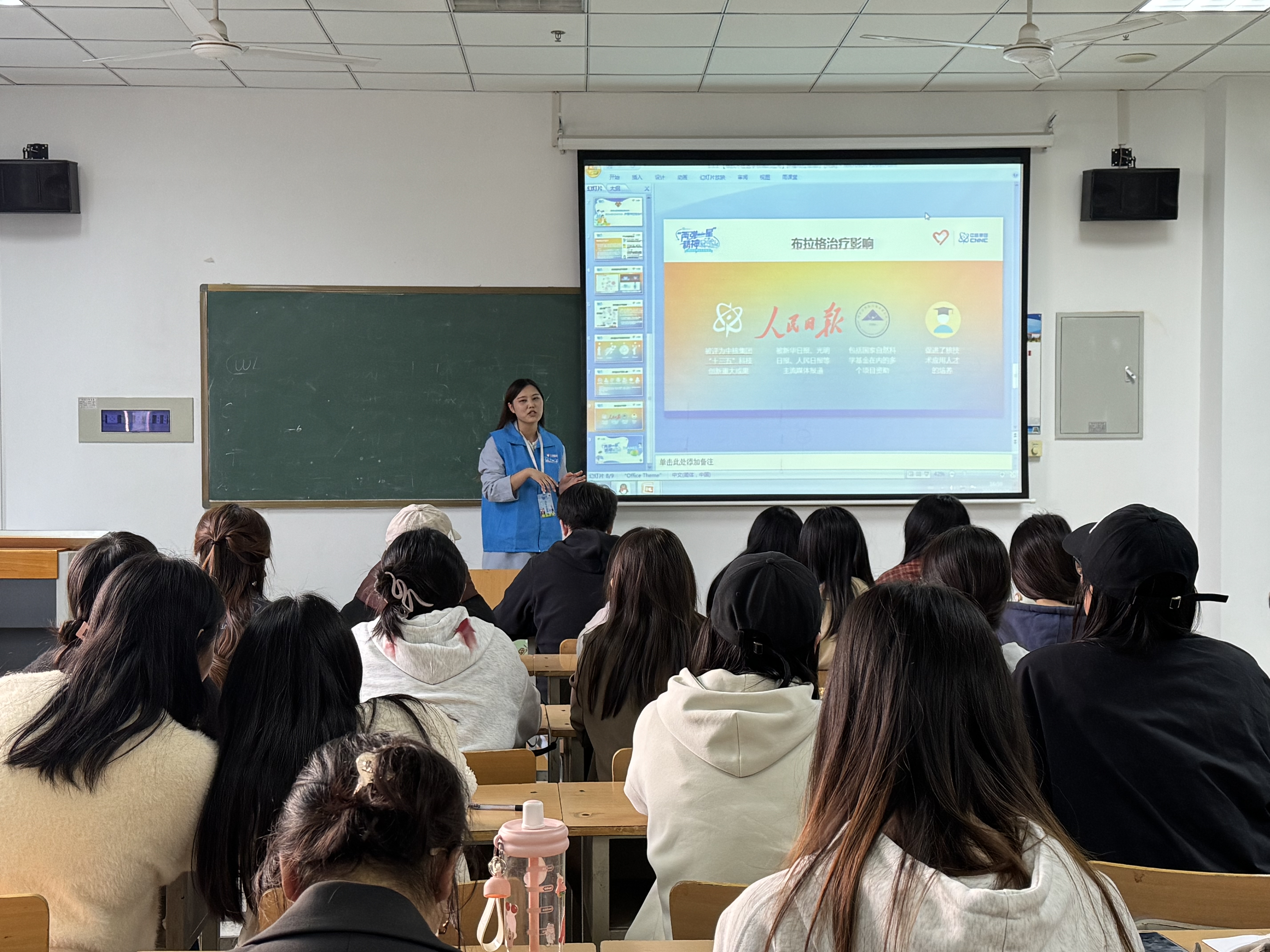 接着,宣讲团团员朱洁对“两弹一星”的产生背景、历史意义和时代价值作了详尽而细致的阐述。通过讲述老一辈科学家在极端困难的环境下,自力更生,成功研制出原子弹、氢弹、人造卫星等先进技术的动人事迹,深深打动了每一位同学。他们都表示,要以老一辈科学家的高尚情操为榜样,为我国科学技术的独立发展做出应有的贡献。