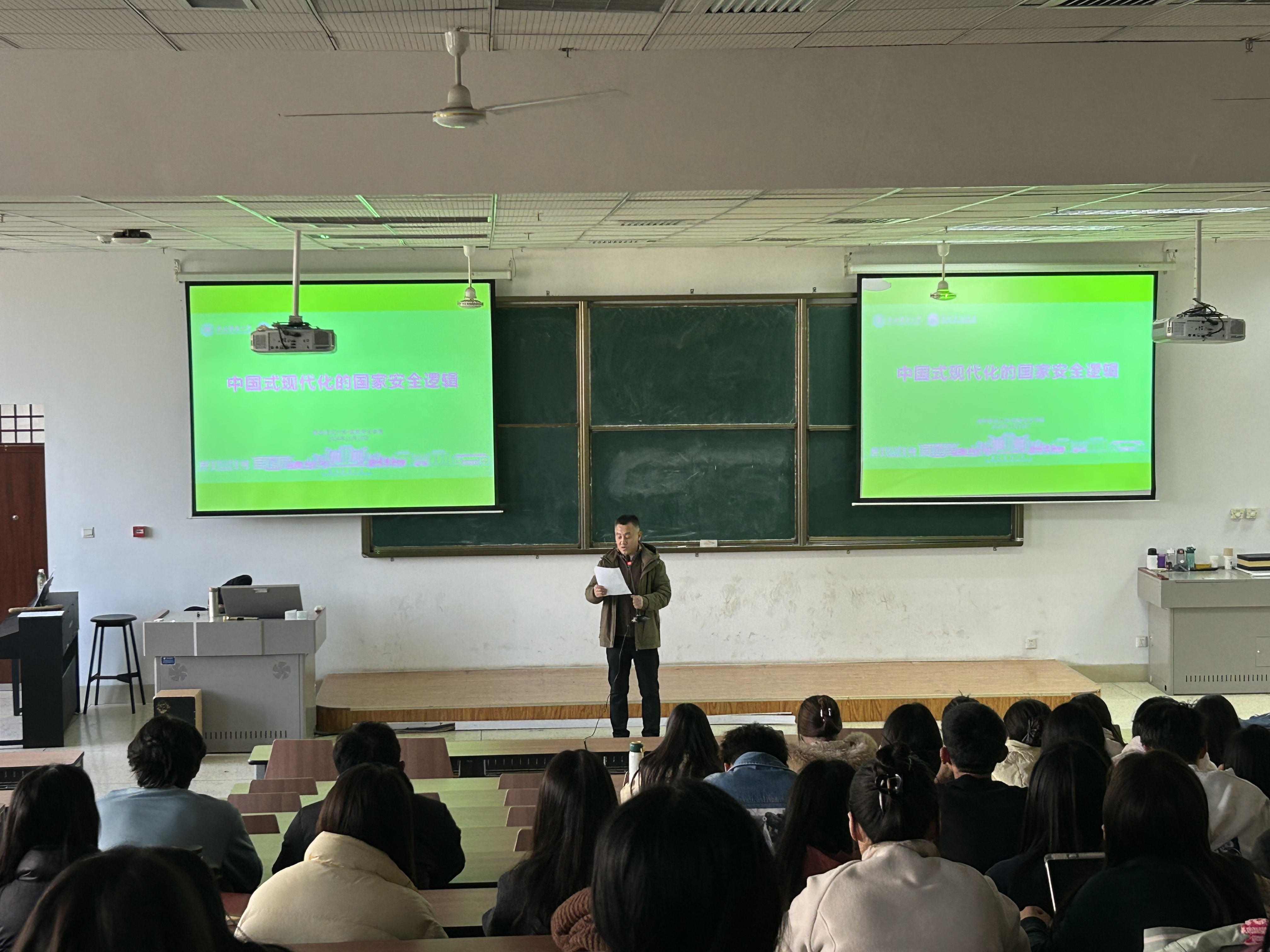 张亚泽教授主要从国家安全在中国式现代化中的核心地位展开论述,结合当前国内外复杂多变的安全形势,深入分析了新时代国家安全的重大意义。在报告中,张教授详细讲解了“总体国家安全观”及其理论创新,强调习近平新时代中国特色社会主义思想对国家安全工作的科学指导作用。他结合具体案例,阐述了外部环境的不确定性与国内改革发展中的潜在风险,特别是非传统安全威胁对国家安全构成的新挑战。张教授进一步强调,国家安全工作的核心目标是增强人民群众的获得感、安全感和幸福感,保障人民利益是国家安全的最终追求。
