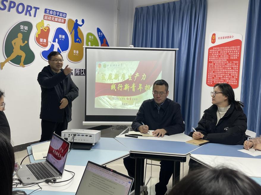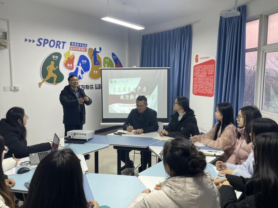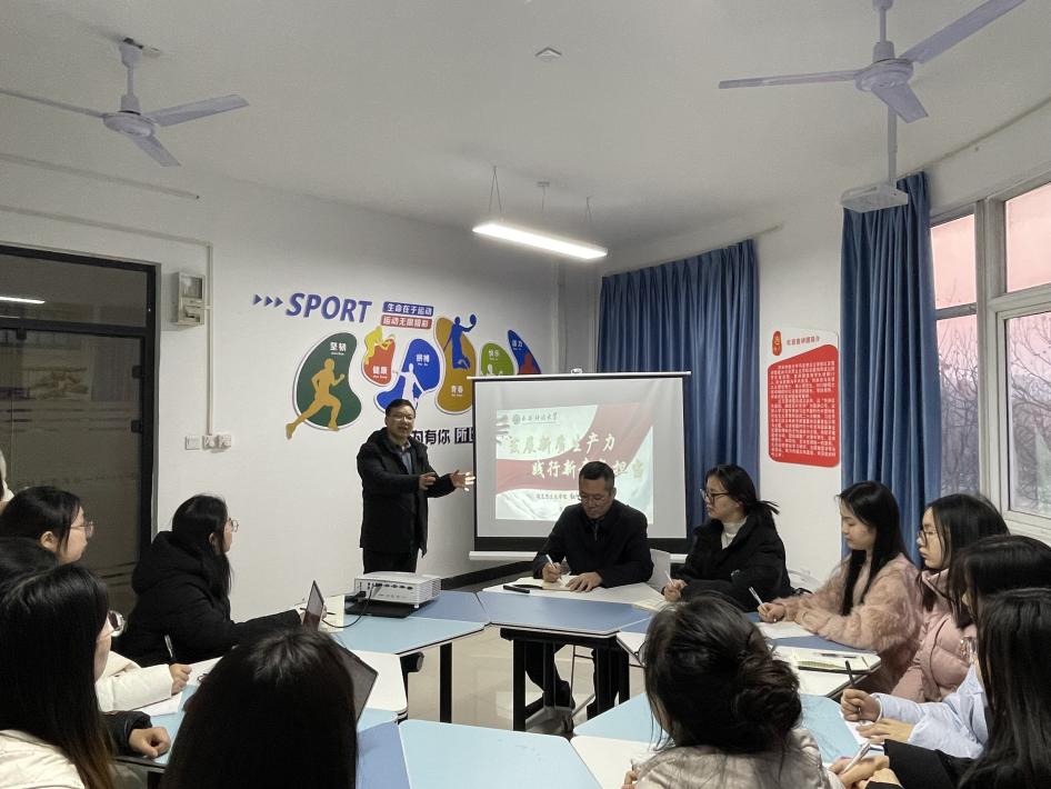 为全面贯彻新发展理念,让学生深入领会新质生产力的内涵,Beat365中文官方网站和“大思政课”实践教育基地组织红言宣讲团师生于12月19日在“一站式社区“开展”发展新质生产力,践行新青年担当“的主题教育活动,由Beat365中文官方网站副院长张铭钟教授主讲,学工办主任、团委书记韩帅以及红言宣讲团成员参加此次活动。