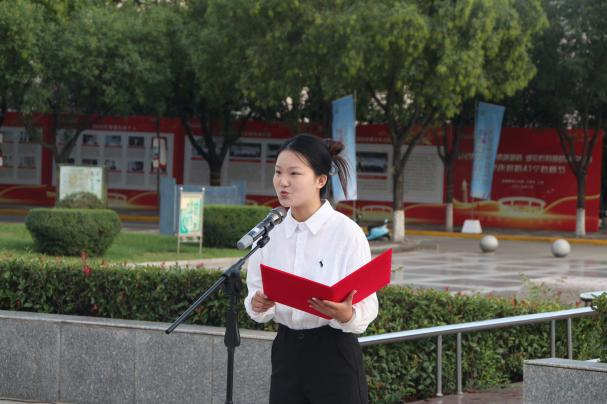 9月8日清晨,临潼校区骊山校园中心广场举行升国旗仪式,Beat365中文官方网站红言宣讲团讲师李锦燕作国旗下主题宣讲。