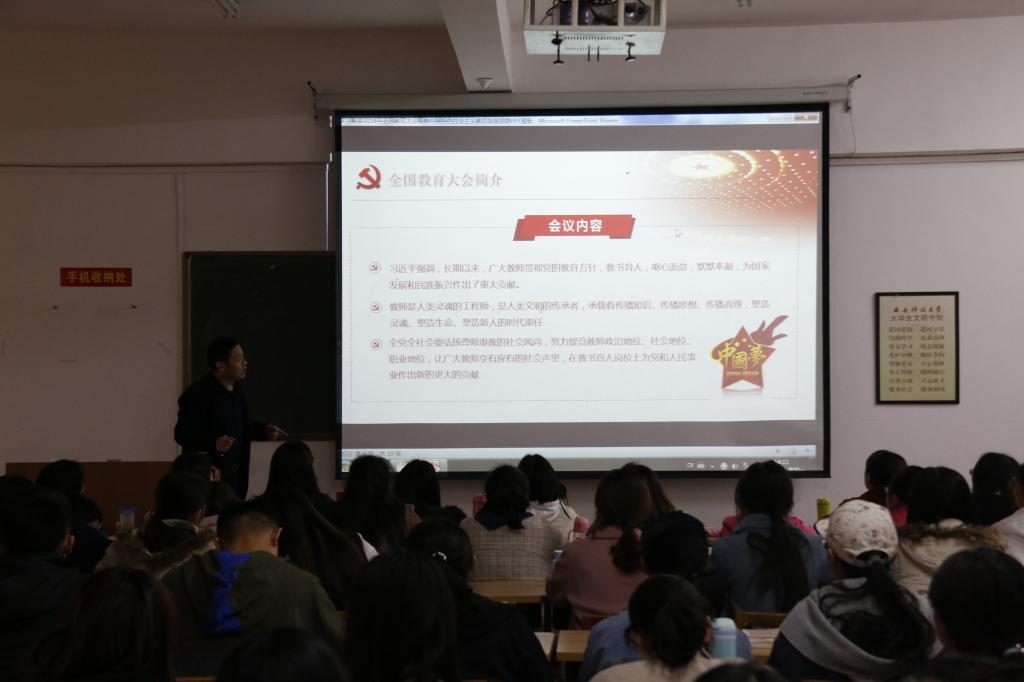 为深入学习贯彻落实全国教育大会精神,按照教育部和省委的安排部署,根据《中共陕西省委高教工委 陕西省教育厅关于做好全国教育大会精神宣讲对谈工作的通知》(陕高教宣〔2018〕11 号)文件精神,学校运用思政课课堂宣讲主渠道,面向全校学生开展宣讲活动。