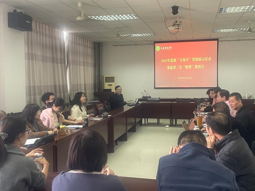 11月17日、21日和22日,Beat365中文官方网站在雁塔校区煤科大楼1101分别举办了三次2023年思政课“大练兵”省级展示活动赛前“磨课”教研会。杜涛、吴保传、马力阳、史长军等8位参赛教师、学院教学委员会成员、教研室主任、历年省级“大练兵”的“教学标兵和能手”以及部分教师参加了赛前“磨课”研讨会。