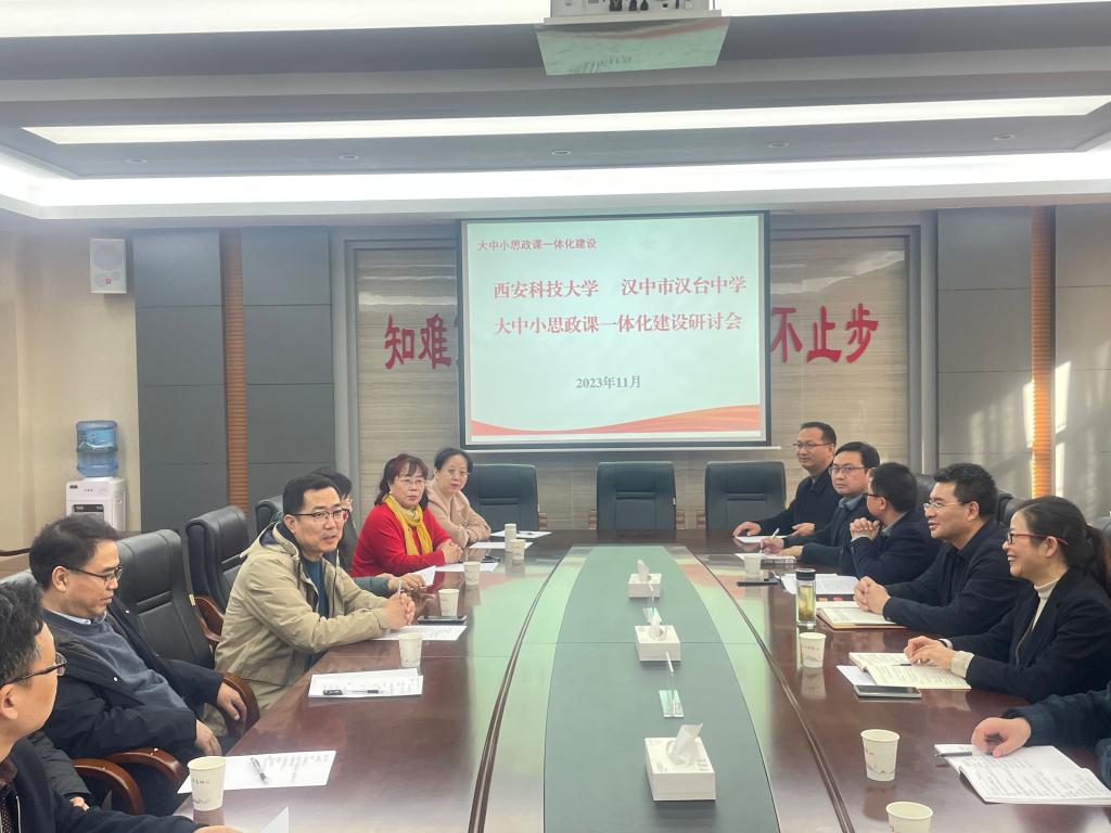11月19日,Beat365中文官方网站、汉中市汉台中学大中小学思政课一体化建设研讨会在汉台中学举行。汉中市教育局副局长杨柱东、汉台中学校长刘敬梅及思政课相关教师、Beat365中文官方网站Beat365中文官方网站党委书记贾哲一行9人参加了本次会议,会议由汉中市教育局副局长杨柱东主持。