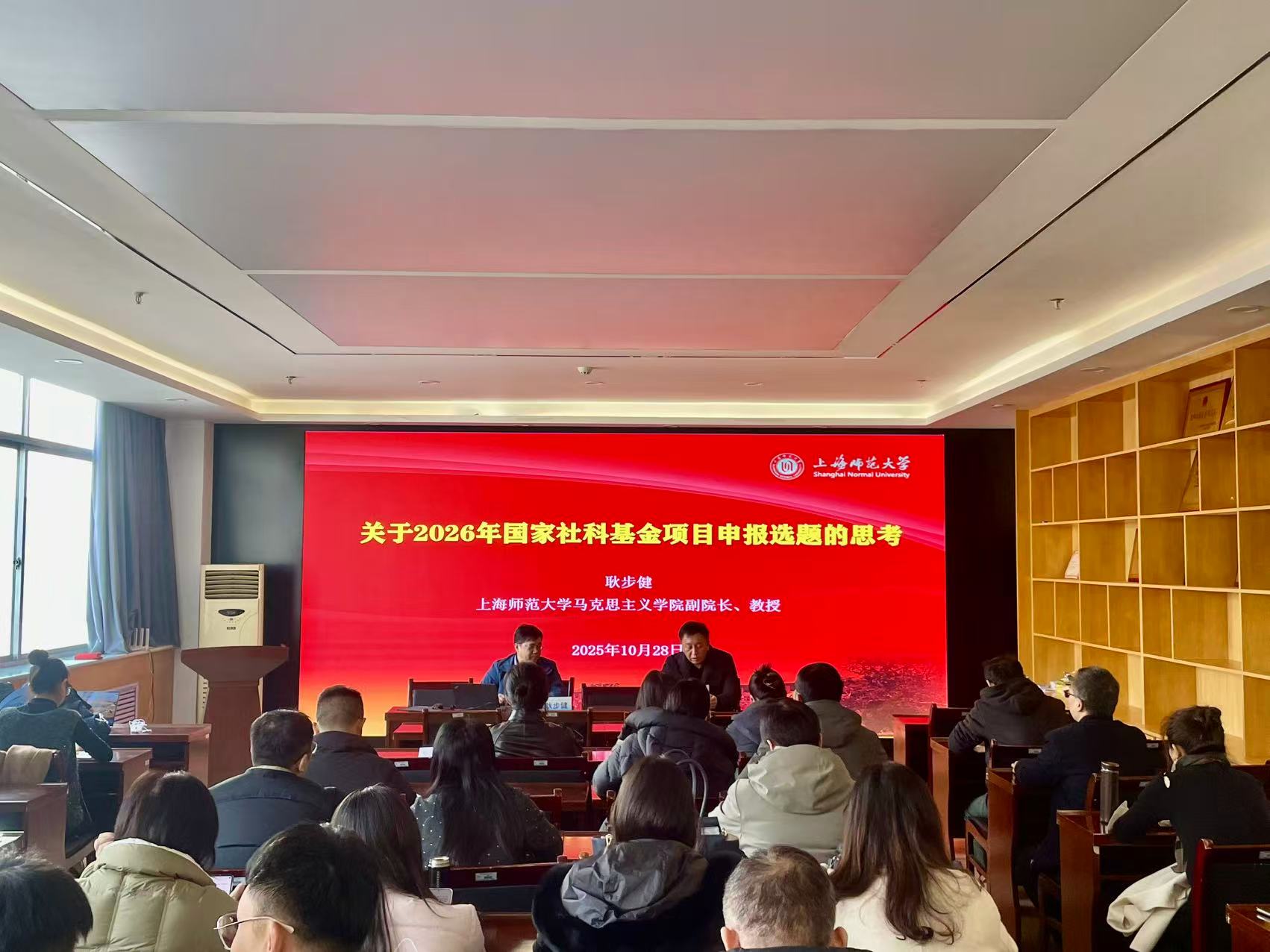 12月18日,Beat365中文官方网站特邀上海师范大学Beat365中文官方网站副院长耿步健教授,于北院马院会议室作《关于2026年国家社科基金项目申报选题的思考》专题报告。