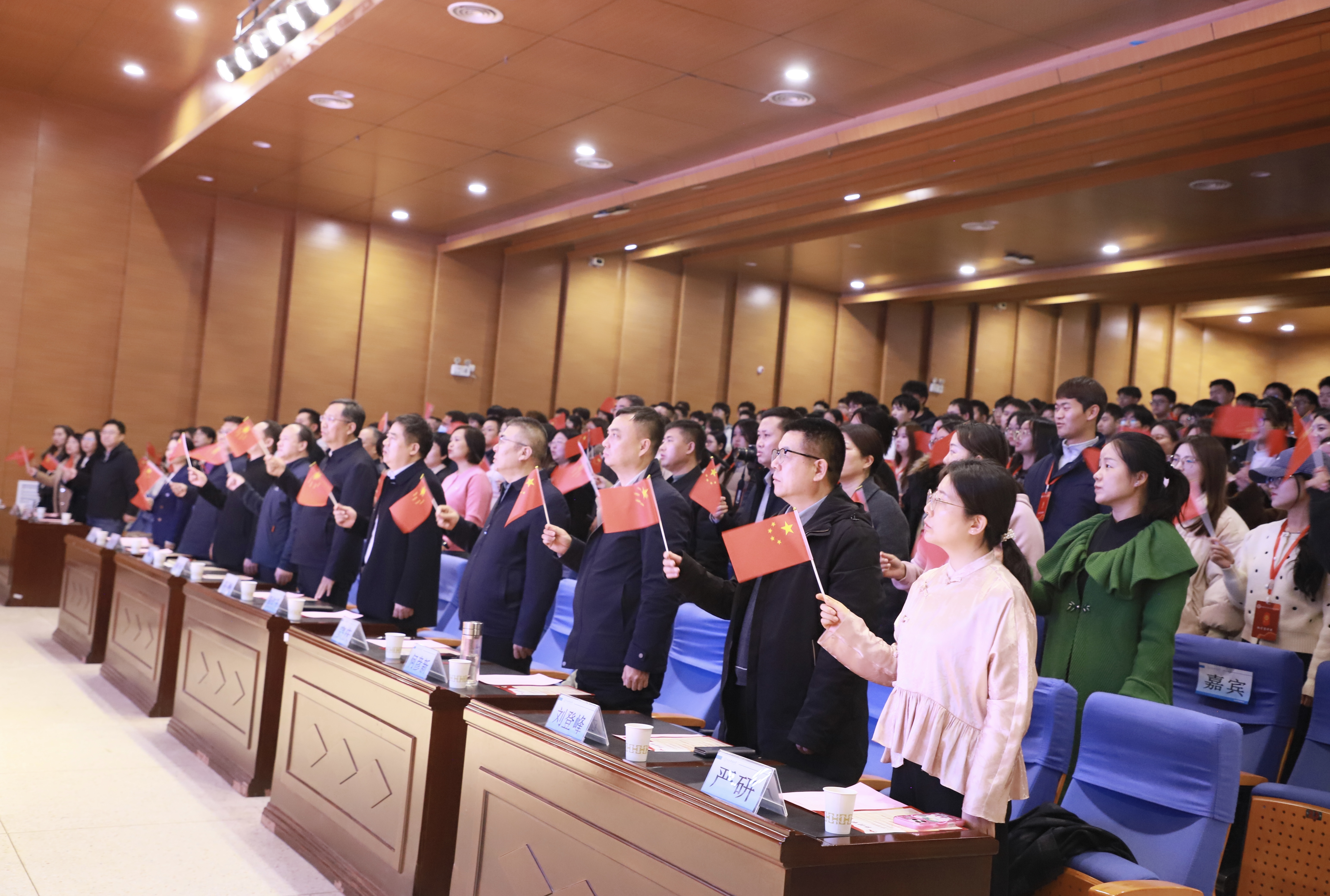 活动尾声,红言宣讲团讲师刘晨阳与八路军西安办事处纪念馆郭鸾娇共同领唱《歌唱祖国》。全体师生挥舞着鲜艳的五星红旗,点点红光与嘹亮歌声交相辉映,展现了新时代青年的爱国热情与昂扬风貌。