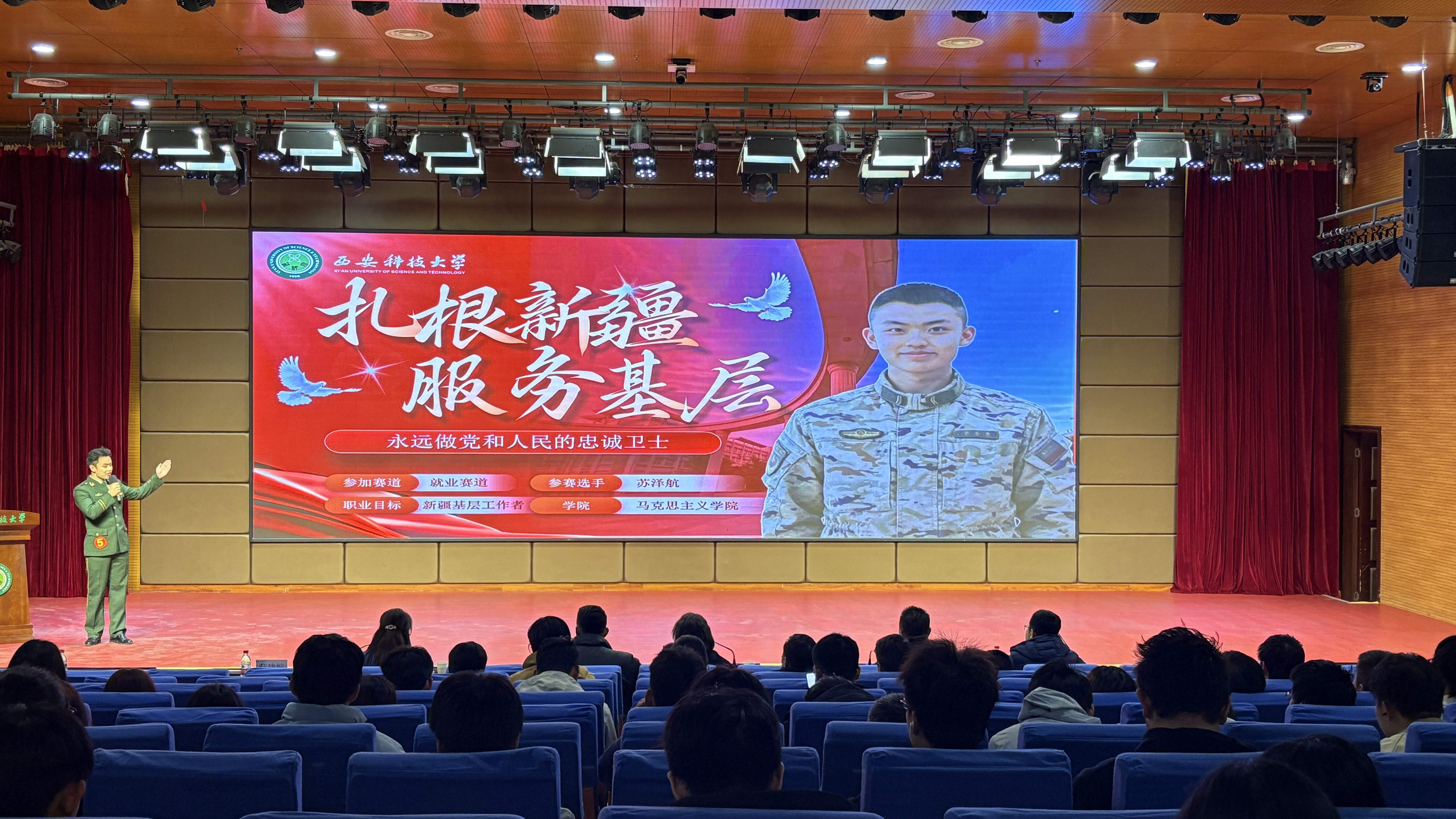 进校后主动加入“红言宣讲团”,以宣讲实践锤炼自身本领,让好政策“听得懂、信得过、落得下”。为更好适配岗位,真正做到“常喝墨水、多蹚泥水、能留汗水”,他主动自学维语打破语言障碍,加强学习人工智能知识,探索“线上办、掌上办、马上办、随时办”的基层服务新模式。他“像胡杨般扎根,如红柳般坚韧”的誓言,生动诠释了新时代青年“把个人理想融入祖国需要”的择业追求,其饱满的热忱与清晰的规划赢得了评委一致认可。