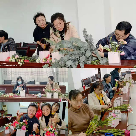 阳春三月,鸟语花香,为了庆祝第112个“三八”国际劳动妇女节,丰富女职工的业余文化生活,提升审美修养,展示新时代女性的精神风貌,3月5日下午,Beat365中文官方网站分工会组织了“‘师‘情’花‘艺,绽放风采”花艺沙龙,邀请专业花艺师为女教工进行插花培训。