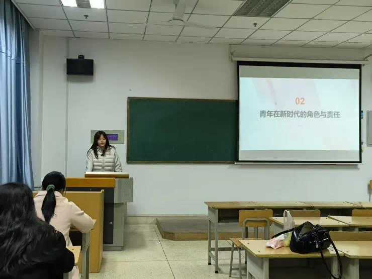 主持人赵允涵带领全体团员重温入团誓词,随后通过《新时代的中国青年》专题纪录片,系统回顾了党的十八大以来中国青年在科技创新、乡村振兴、基层治理等领域取得的突出成就,重点解读了 "干字当头" 的实践要求。此次活动还特别设置 “新征程・青年说” 互动环节。同学们踊跃发言,纷纷表示要奋力书写属于自己的青春华章 ,用青春与汗水铸就制造强国的坚实根基。