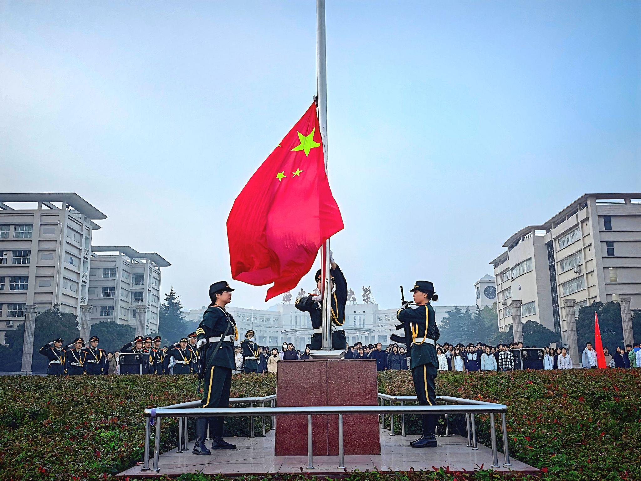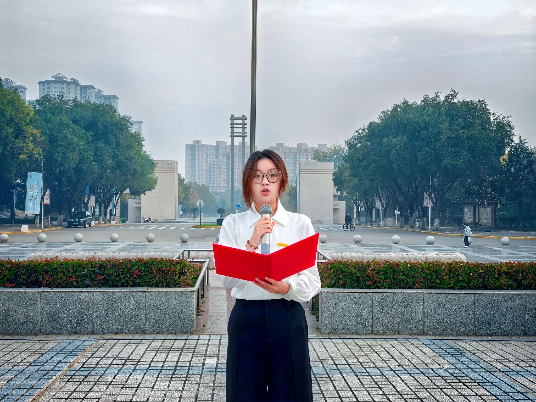 113日清晨,临潼校区骊山校园中心广场举行升国旗仪式,Beat365中文官方网站红言宣讲团讲师郭依麟作国旗下主题宣讲。