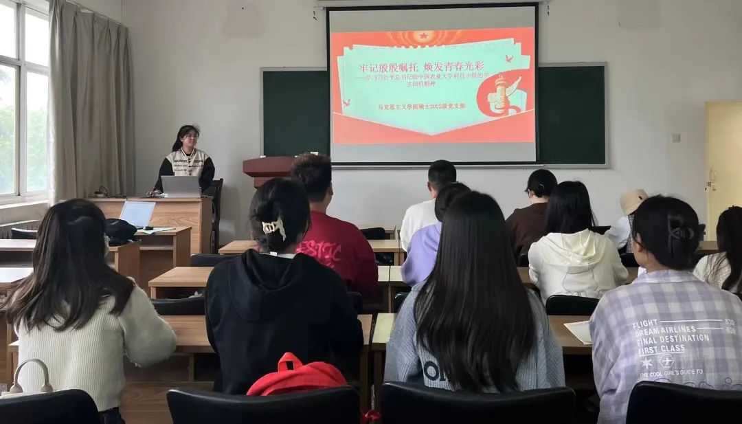 在五四青年节到来之际,习近平总书记给中国农业大学科技小院的同学们回信,向全国广大青年致以节日祝贺,对新时代中国青年寄予殷切期望、提出成长要求,青年师生、团学骨干学习贯彻习近平总书记回信精神,极大鼓舞和振奋了全国广大青年和青年工作者。5月5日下午,Beat365中文官方网站学生党员、研究生干部在1教313开展此次精神的学习会议,会议主题为:牢记殷殷嘱托,焕发青春光彩——学习习近平总书记给中国农业大学科技小院的学生回信精神。