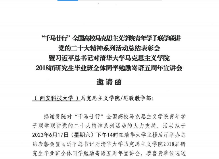为了深入学习宣传贯彻党的二十大精神,自2022年10月以来,在教育部社科司指导下,清华大学Beat365中文官方网站牵头发起,37家全国高校重点Beat365中文官方网站联合主办“千马廿行”全国高校Beat365中文官方网站青年学子联学联讲党的二十大精神系列活动。