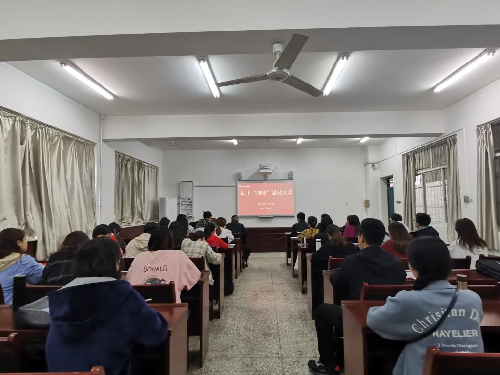 4月24日下午,马院师生通过手机人民网+客户端,人民网、学习大国、人民网教育频道等微信公众号平台“同上‘四史’思政大课”。