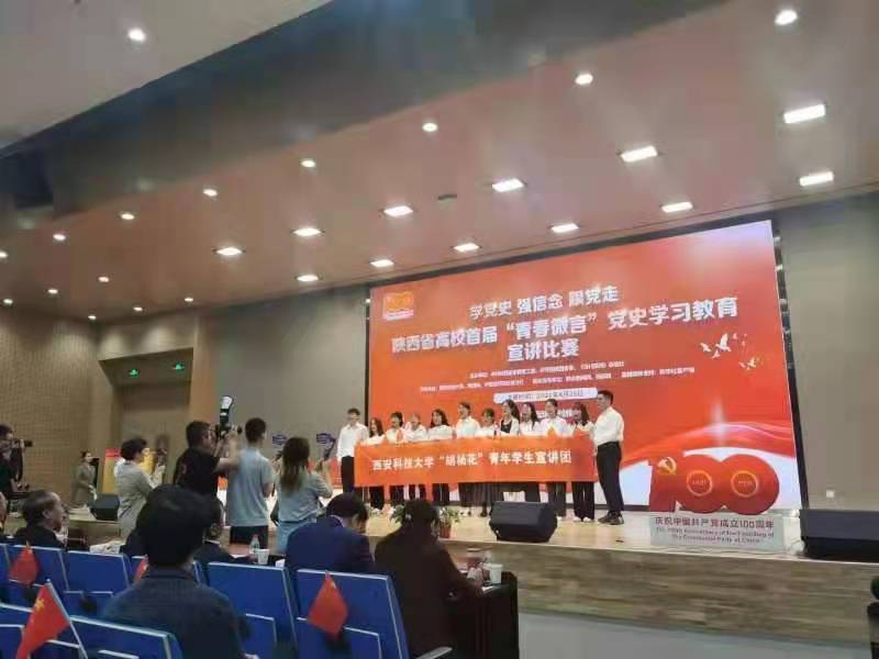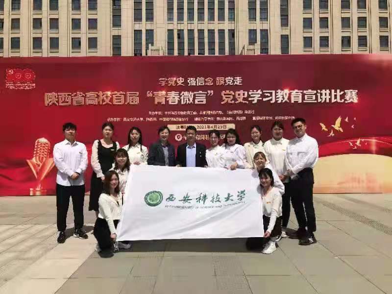 4月29日上午,陕西省高校首届“青春微言”党史学习教育宣讲比赛于中国西部科技创新港圆满落幕。学院2019级硕士研究生权颖庆荣获二等奖、最佳人气奖,张杰荣获三等奖,中国近现代史纲要教研室主任马建华荣获最佳指导老师奖。
