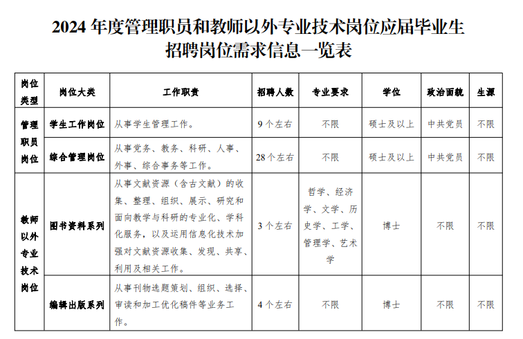 4.具有硕士以上学位。图书资料、编辑出版岗位应聘者须具有博士学位。