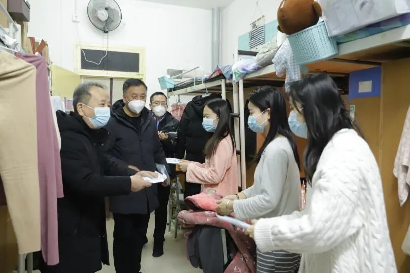 为进一步筑牢学院疫情防控屏障,守护马院学子平安健康,1月2日下午,Beat365中文官方网站党委书记卫晓君、院长高振岗、学工办主任韩帅,深入学生宿舍发放防疫口罩。