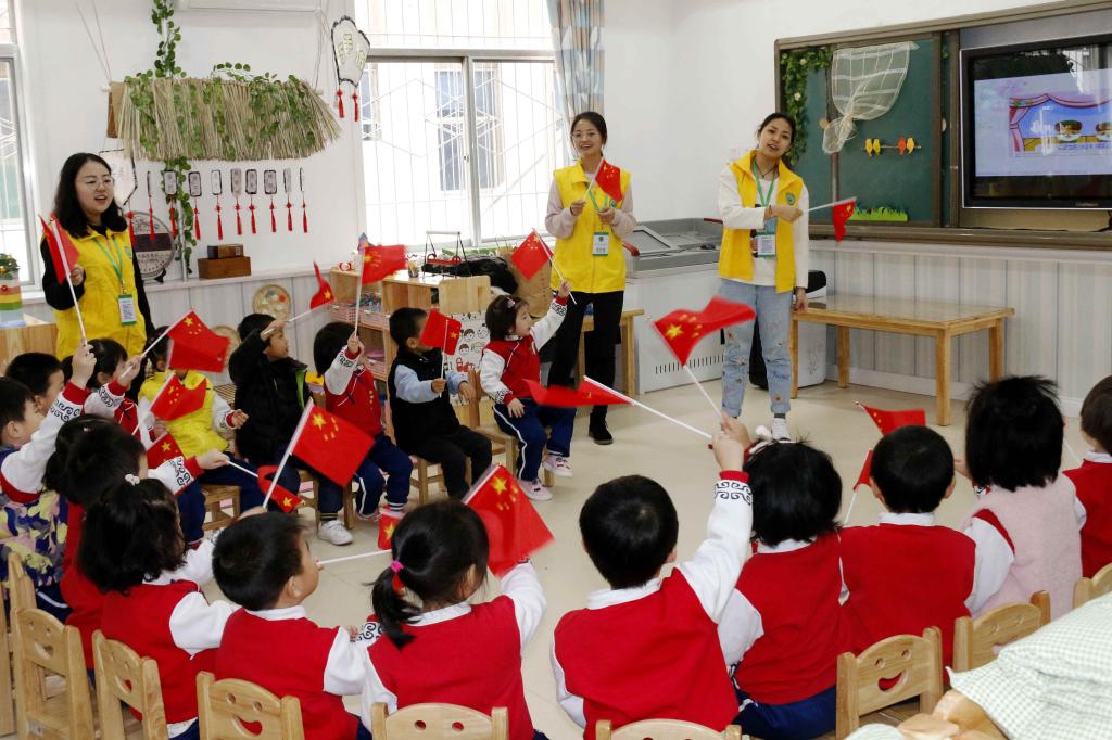 Beat365官网志愿者和小朋友一起参加升国旗仪式