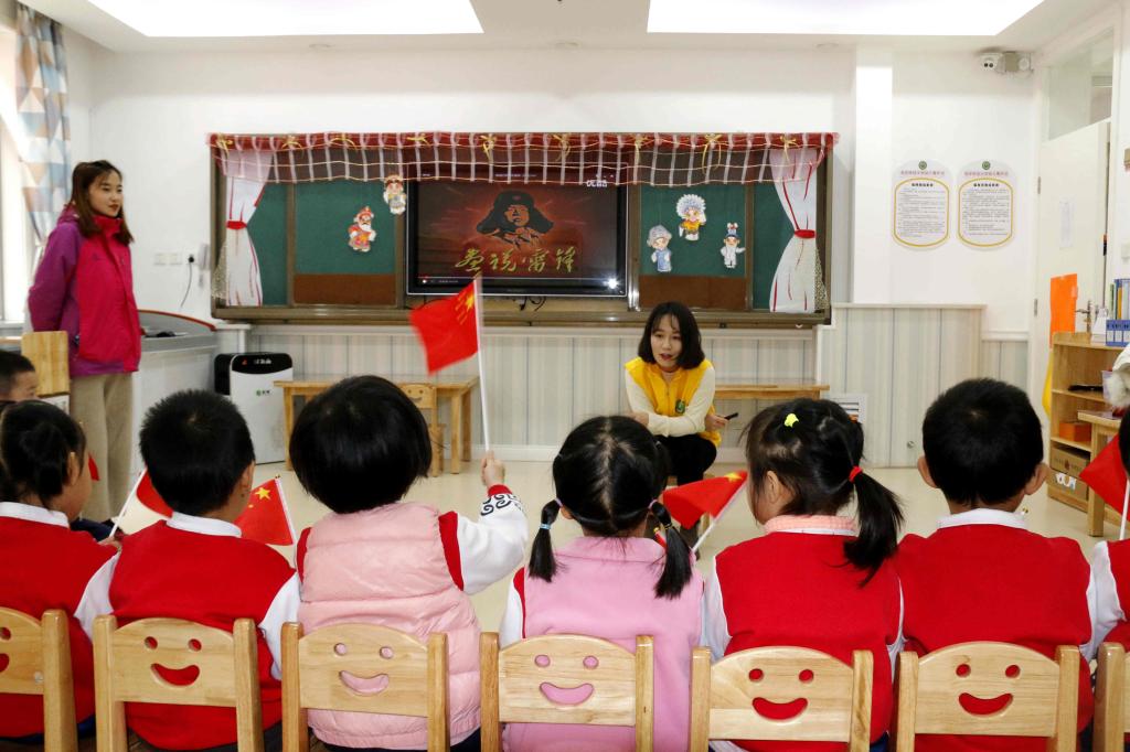 讲雷锋故事 学雷锋精神第一小组成员和幼儿园师生合影